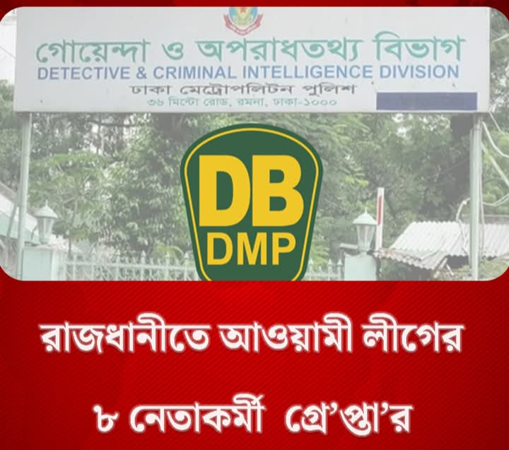 এতে বলা হয়, রাজধানীতে ঝটিকা মিছিলে অংশগ্রহণকারী কার্যক্রম নিষিদ্ধ আওয়ামী লীগ ও সহযোগী সংগঠনের আরও আট নেতাকর্মীকে গ্রেফতার করেছে ঢাকা মহানগর গোয়েন্দা পুলিশ (ডিবি)।