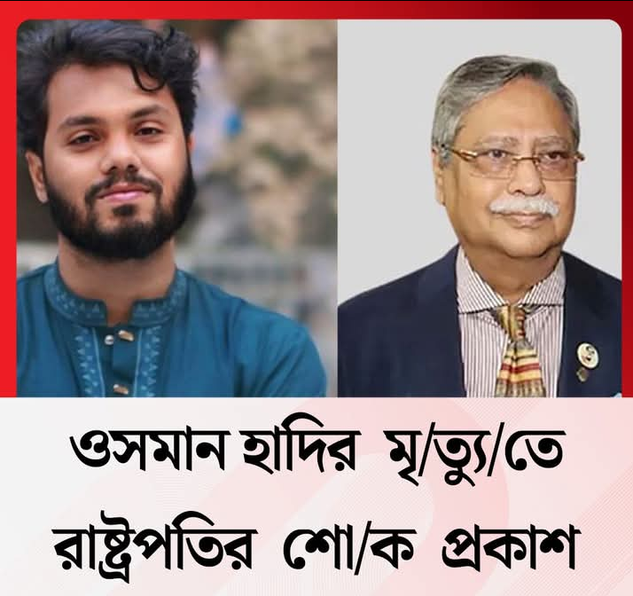 ইনকিলাব মঞ্চের মুখপাত্র শরিফ ওসমান হাদীর মৃত্যুতে গভীর শোক জানিয়েছেন রাষ্ট্রপতি মোহাম্মদ সাহাবুদ্দিন।